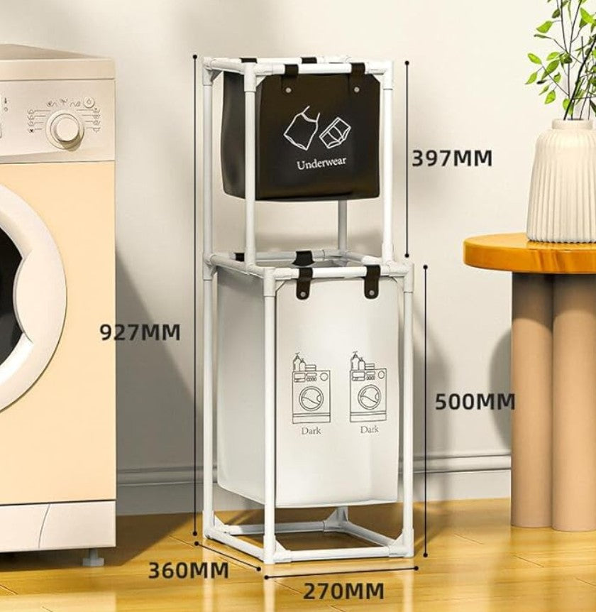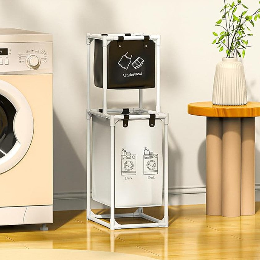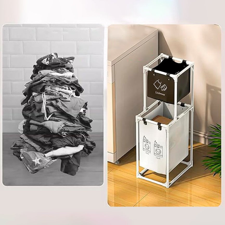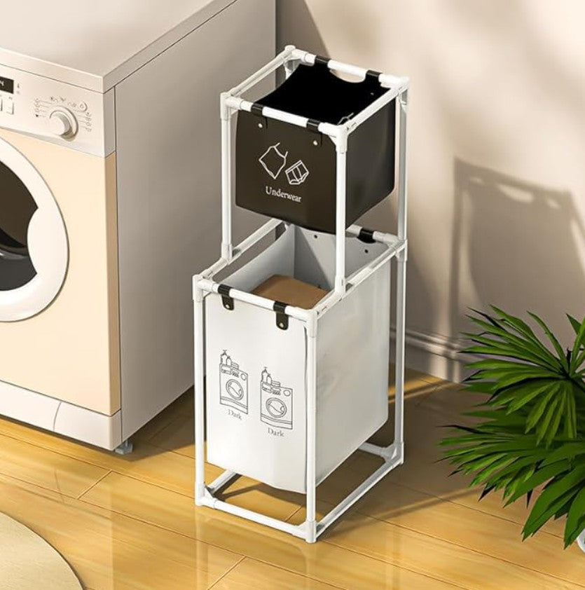 Con esta práctica y estilizada cesta clasificadora de doble nivel, podrás mantener tu ropa perfectamente organizada antes de lavarla.