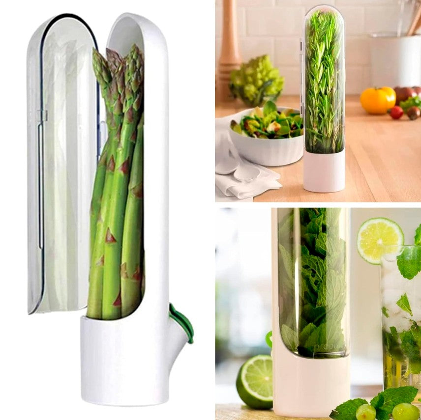 Con este contenedor conservador de alimentos tendrás la solución definitiva para extender la frescura de tus hierbas, verduras y más.